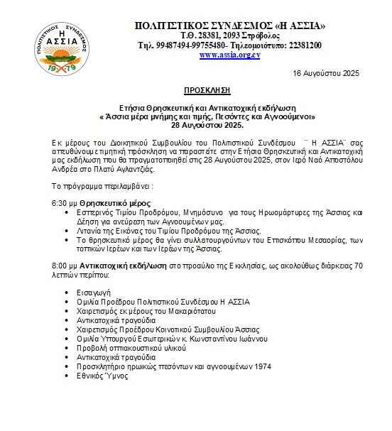 Εκδήλωση Μνήμης και Τιμής - Άσσια / Πεσόντες / Αγνοουμένοι 2025